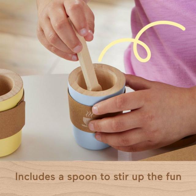 Order up! Preschool kids can brew up hours of pretend play with this Wooden Coffee To Go Set from Fisher-Price. This 15-piece playset includes 3 takeout beverage cups with lids & sleeves, a spoon to stir, 2 cookies and 2 marshmallows for “snacking,” and cup holder to carry it all. Each piece is made from wood from FSC-certified forests. Unleash your pre-schooler’s creativity with this wooden role-play set! Suitable for ages 3 and up.